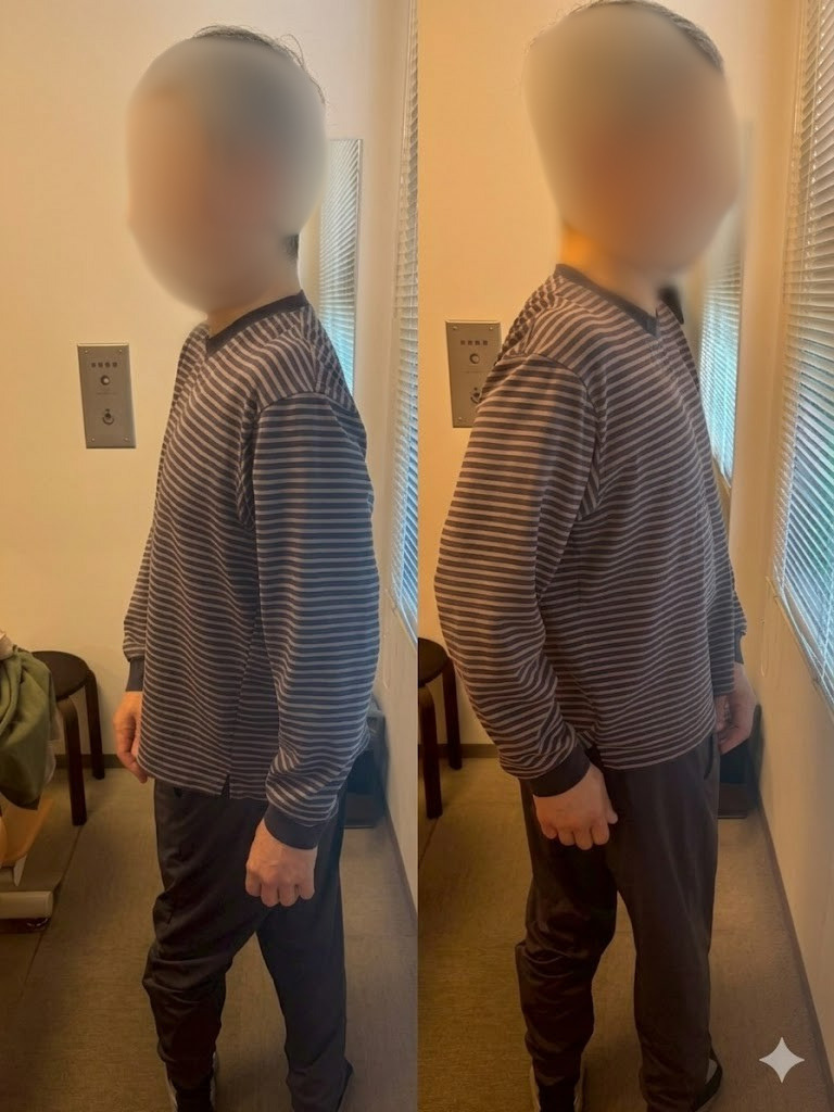 施術後の写真では、肩の入り方、首の向き、そして何より