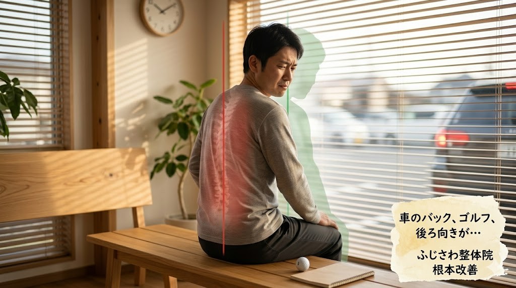 足裏から首筋まで繋がるバックラインの硬直が、旋回軸をロックさせていました。この筋膜の引きつれを放置すると、腰だけでなく広背筋や頸部にも慢性的な炎症を引き起こすリスクがあります。