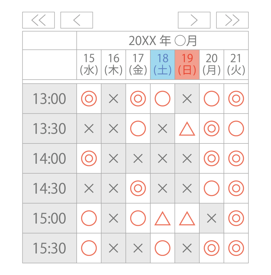 - 最新の予約状況が即座に反映され、ご希望の日時をスムーズにお探しいただけます。